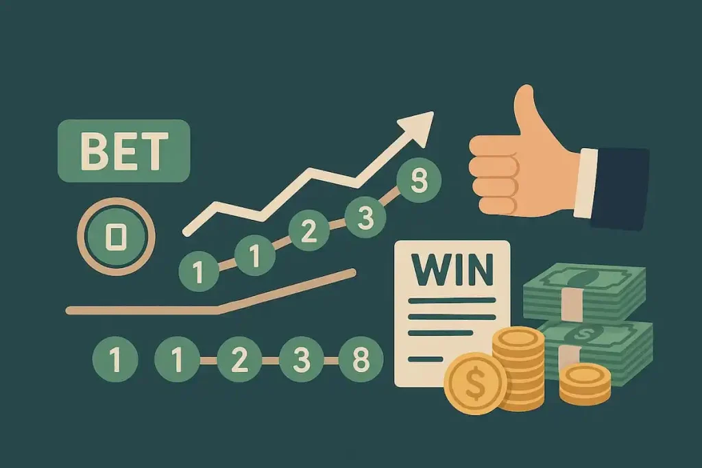 Ví dụ đơn giản: nếu bạn bắt đầu với mức cược 100K, chuỗi cược sẽ là 100K → 100K → 200K → 300K → 500K… Khi thắng ở bất kỳ bước nào, bạn sẽ quay lại mức cược thấp hơn theo nguyên tắc lùi hai bước. Điều này giúp bạn dần lấy lại số tiền đã mất trước đó.